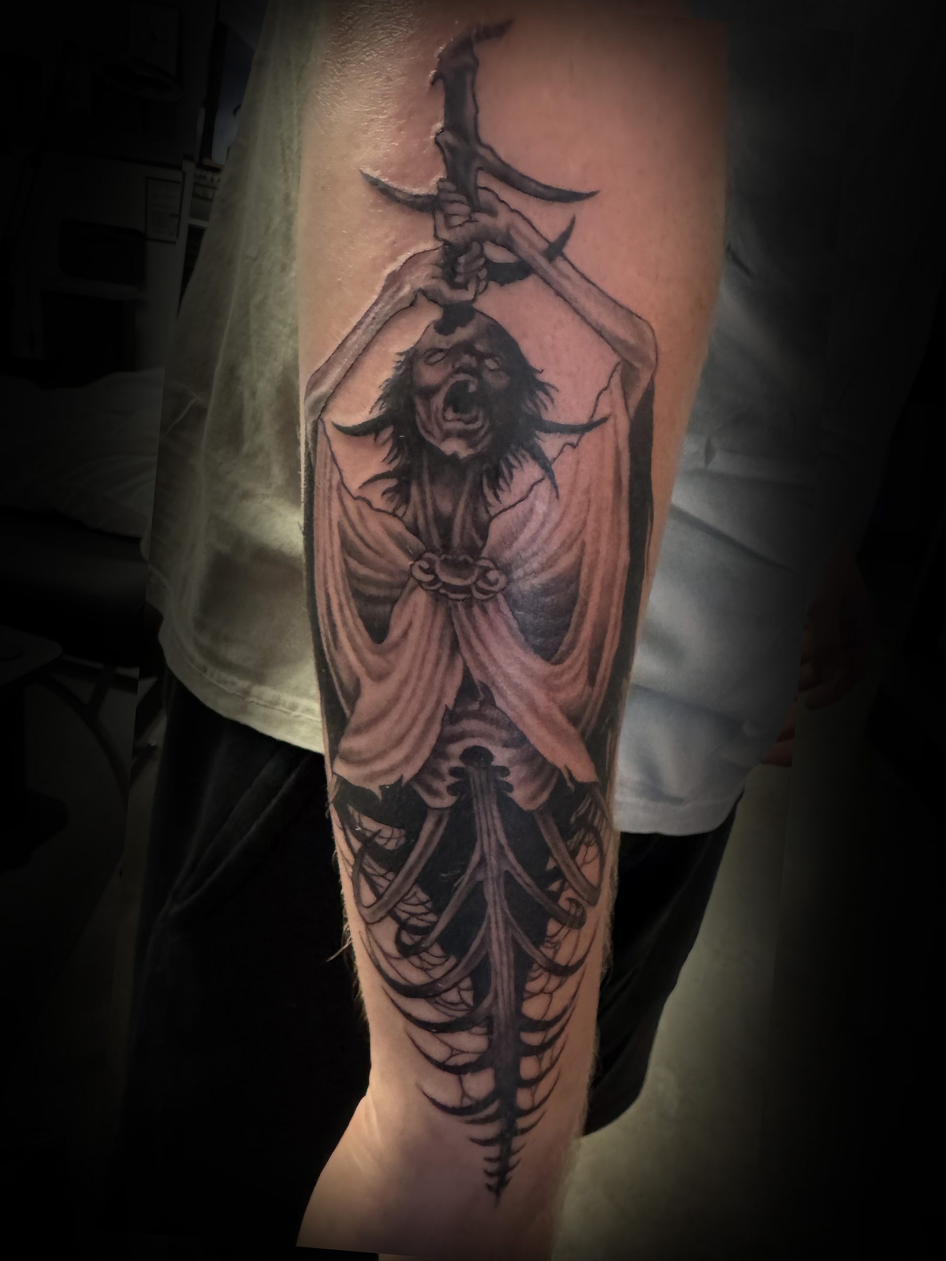 Chris has been tattooing professionally since 1995. He was inspired by his Mother’s drawings and his Grandfather’s painting. Artistic ability has always come naturally for Chris. He enjoys working with serious collectors who are looking for an artist who has experience in covering large areas of the body. Chris is able to take their ideas and turn their body into a work of art.