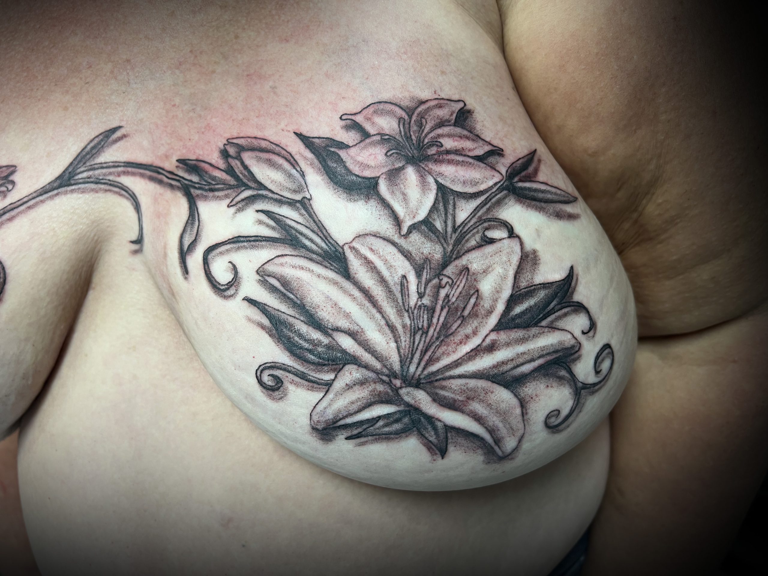 Lisa has been tattooing professionally since 2001. Having a love for Art since she was a child. Inspired both by her Mother and Brothers Artistic ability. Comfortable working with Large Custom Tattoo designs in Black and Gray as well as color.